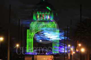 CIUDAD DE MÉXICO, 24OCTUBRE2019.- Esta madrugada se llevaron a cabo las pruebas de audio y luces en el Monumento a la Revolución, previo a la inauguración del Gran Festival del Día de Muertos que se llevará a cabo al filo de las 19.00 horas. FOTO: LUIS CARBAYO /CUARTOSCURO.COM