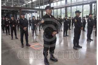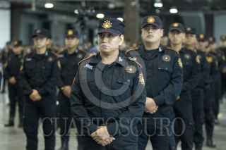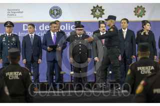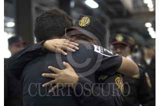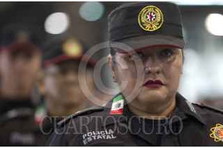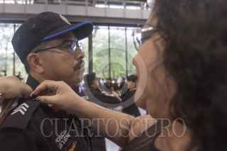 MONTERREY, NUEVO LEÓN, 24OCTUBRE2019.- Policías de Nuevo León, llamada Fuerza Civil, celebraron el "Día del Policía" con reconocimientos y ascensos en las corporaciones, en un evento encabezado por autoridades estatales. En el evento, llevado a cabo en la Nave Lewis en el interior del Parque Fundidora; gobierno del estado de Nuevo León anunció un fondo de 260 millones de pesos en bonos a policías que realicen buenas acciones. FOTO: GABRIELA PÉREZ MONTIEL /CUARTOSCURO.COM