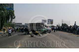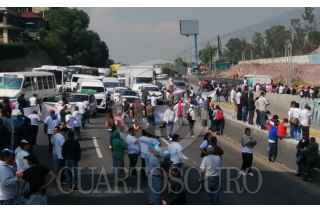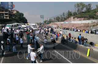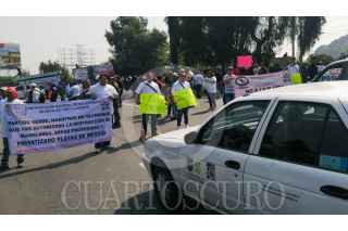 ECATEPEC, ESTADO DE MÉXICO, 24OCTUBRE2019.- Trabajadores dedicados a la recolección de basura y desechos industriales bloquearon la autopista México-Pachuca, a la altura de Caminante, para que el gobierno no privatice el sector de producción de reciclaje ya que esto significaría la pérdida de miles de empleos. FOTO: ARMANDO MONROY /CUARTOSCURO.COM