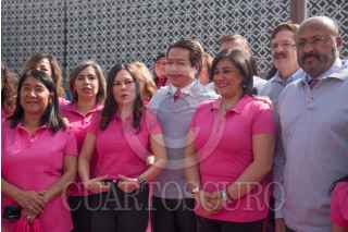 CIUDAD DE MÉXICO, 24OCTUBRE2019.- Diputados y diputados de los grupos parlamentarios Morena, PRI, PAN, PRD, PT, PES y Movimiento Ciudadano, conformaron un listón rosa, como acto simbólico como parte del Mes de Sensibilización sobre el Cáncer de Mama. FOTO: MARIO JASSO /CUARTOSCURO.COM