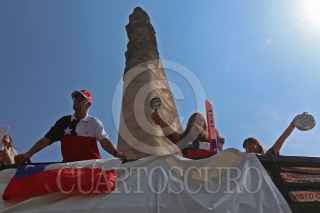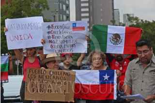 GUADALAJARA, JALISCO, 25OCTUBRE2019.- Un grupo de Chilenos que radica en la ciudad se manifestaron en la Glorieta de los Desaparecidos en solidaridad con el pueblo Chileno y protestaron contra el rechazo a la represión y criminalización de la luchas populares. FOTO: FERNANDO CARRANZA GARCIA / CUARTOSCURO.COM