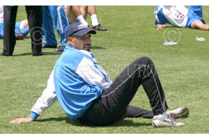 MEXICO, D.F. 22SEPTIEMBRE2005.- César Fabián Delgado, descansa en la cancha del estadio Azul al termino del entrenamiento. FOTO: Nelly Salas/CUARTOSCURO.COM