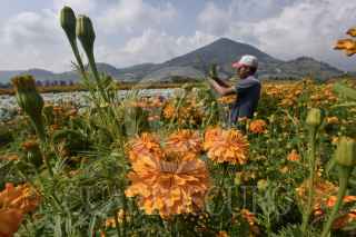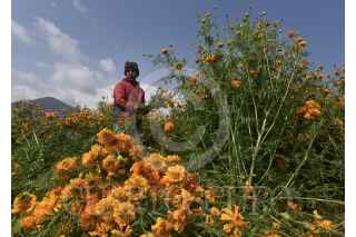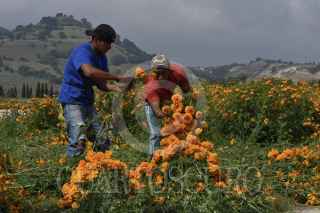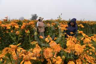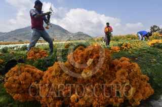 TENANGO DEL VALLE, ESTADO DE MÉXICO, 29OCTUBRE2019.- Desde temprana hora pobladores de San Francisco Putla en Tenango Del Valle acuden al campo a cortar flor de Cempasúchil utilizada en el festejo de Dia de Muertos, la flor es vendida en la localidad al igual que la llevan a la Central de Abastos de Toluca y de la Ciudad de México. Esta flor adornará las ofrendas y panteones en donde se acude a velar, elemento importante para este festejo. FOTO: CRISANTA ESPINOSA AGUILAR /CUARTOSCURO.COM