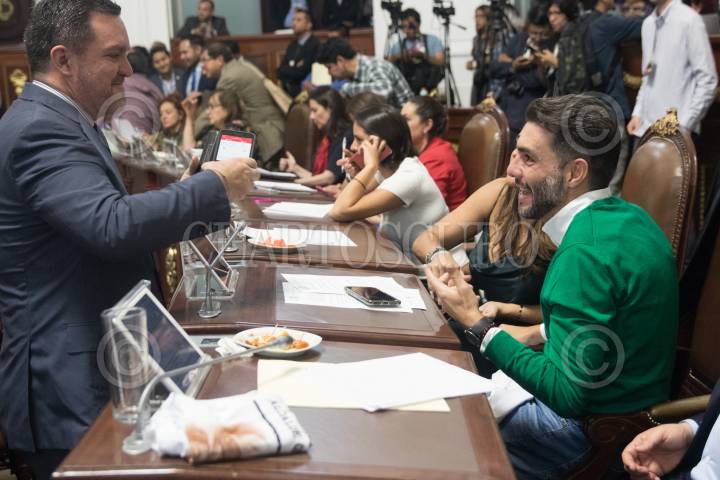 CIUDAD DE MÉXICO, 29OCTUBRE2019.- Alessandra Rojo de la Vega Piccolo, coordinadora del PVEM, y Jesús Sesma, líder del PVEM en la Ciudad de México, durante la sesión en el Congreso de la Ciudad de México. FOTO: MOISÉS PABLO /CUARTOSCURO.COM
