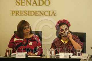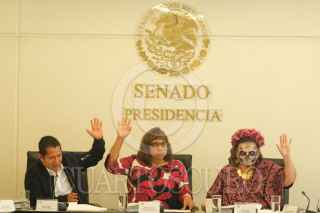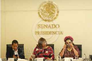 CIUDAD DE MÉXICO, 30OCTUBRE2019.- Casimiro Méndez Ortíz, secretario de la Comisión de Asuntos Indígenas del Senado; Ma. Leonor Noyola Cervantes, presidenta de la Comisión de Asuntos Indígenas y la senadora Xochitl Gálvez, durante la Reunión de Comisión de Pueblos Indígenas, realizada en el Senado de la República. FOTO: GRACIELA LÓPEZ /CUARTOSCURO.COM