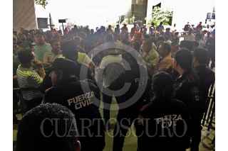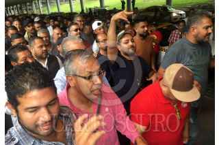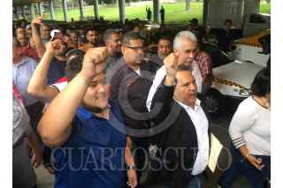 MONTERREY, NUEVO LEÓN, 30OCTUBRE2019.- Taxistas que operan sin regularización legal para trabajar organizaron una marcha encabezada por el Secretario General de Transporte de la CROC, quienes acudieron al Congreso del estado a reclamar operativos severos en su contra y petición excesiva de documentación para operar legalmente. Así mismo, piden la renuncia del director de la Agencia Estatal de Transportes Noé Chávez. FOTO: GABRIELA PÉREZ MONTIEL /CUARTOSCURO.COM