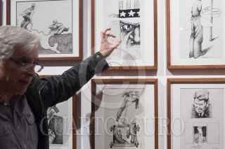 CIUDAD DE MÉXICO, 30OCTUBRE2019.- El caricaturista Helio Flores inauguró una exposición de su obra en el Museo del Estanquillo, la cual comprende casi sesenta años de trayectoria y esta compuesta de 300 piezas realizadas desde 1960 hasta la actualidad, la muestra esta curada por Rafael Barajas "El Fisgón" quien señaló que fue un trabajo sumamente difícil resumir la obra del maestro Flores por el gran valor peridístico y gráfico que alberga cada uno de los cartones que produce a diario el originario de Xalapa, Veracruz. Helio Flores es el creador del mítico personaje "El hombre de negro", durante la conferencia de prensa precisó que ha caricaturizado y criticado a 12 presidente de México, Adolfo Ruiz Cortines y Carlos Salinas de Gortari, para el han sido los más difíciles de plasmar hablando técnicamente. La exposición "Helioflores" se inaugurará este 30 de octubre y permanecerá hasta el 23 de febrero de 2020. FOTO: MOISÉS PABLO /CUARTOSCURO.COM
