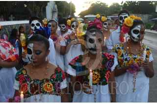 LEONA VICARIO, QUINTANA ROO, 30octubre2019.- Como cada año la localidad de Leona Vicario festeja el hanal pixan la cual se realiza del 31 de octubre al 2 de noviembre de cada año y coincide con la celebración del Día de Muertos. Ambas tradiciones celebran un reencuentro entre los seres vivos y sus seres queridos que se han adelantado en su viaje al más allá. La historia del Hanal Pixan cuenta que el 31 de octubre se dedica a las almas de los niños, el 1 de noviembre a las almas de los adultos y el 2 de noviembre es el Día de los Fieles Difuntos (niños y adultos). De acuerdo con la creencia del Hanal Pixan maya, existen ánimas que no tienen familiares o que por algún motivo no ponen altar para ellos, a la cual se les conoce como "Ánima Sola". FOTO: ELIZABETH RUIZ /CUARTOSCURO.COM