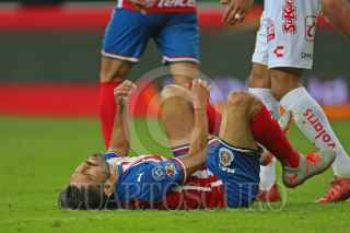 ZAPOPAN, JALISCO, 30OCTUBRE2019.- Alan Pulido jugador de Chivas se reincorpora después de una entrada fuerte, esto en partido correspondiente a la Jornada 17 del Torneo Apertura 2019 de la Liga MX, en donde se enfrentaron las Chivas de Guadalajara frente a Xolos de Tijuana, en partido que se llevo a cabo en el Estadio Akron, en donde el marcador al final es de 1-0 a favor del equipo visitante. FOTO: FERNANDO CARRANZA GARCIA / CUARTOSCURO.COM