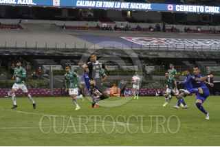 CIUDAD DE MÉXICO, 31OCTUBRE2019.- La máquina celeste del Cruz Azul ganó 1-0 con gol de Milton Caraglio a la escuadra de los panzas verdes del León, esto correspondiente a la jornada 16 de la Liga MX, disputada en el estadio Azteca. FOTO: ROGELIO MORALES /CUARTOSCURO.COM