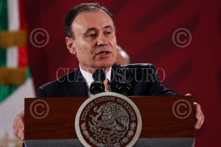 CIUDAD DE MÉXICO, 01NOVIEMBRE2019.- Alfonso Durazo, secretario de Seguridad y Protección Ciudadana, durante la conferencia de prensa matutina donde se abordaron las aclaraciones respecto al operativo para la captura de Ovidio Guzmán, así como la polémica creada tras dar a conocer el nombre del comandante encargado del operativo. FOTO: GALO CAÑAS /CUARTOSCURO.COM