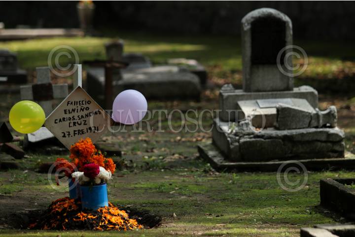 CIUDAD DE MÉXICO, 01NOVIEMBRE2019.- Familias asisten al Panteón de de Xoco, en la alcaldía de Benito Juárez, para limpiar y adornar las tumbas con motivo del Día de Muertos. FOTO: GALO CAÑAS /CUARTOSCURO. COM