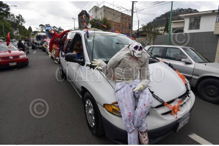 TOLUCA, ESTADO DE MÉXICO, 01NOVIEMBRE2019.- Funerarias Unidas Del Valle de Toluca desfilaron por la ciudad con algunos ataúdes y carrozas fúnebres y disfraces alusivos a la fecha, como parte de los festejos del Día de Muertos. FOTO: CRISANTA ESPINOSA AGUILAR /CUARTOSCURO.COM