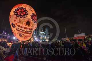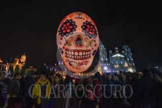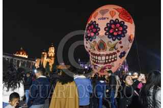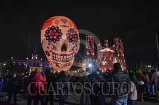 TOLUCA, ESTADO DE MÉXICO, 01NOVIEMBRE2019.- Como parte de las actividades del Festival del Alfeñique en Toluca fue instalado un globo aerostático con figura de calavera en la Plaza de los Mártires, los visitantes se tomaron la foto del recuerdo. FOTO: CRISANTA ESPINOSA AGUILAR /CUARTOSCURO.COM