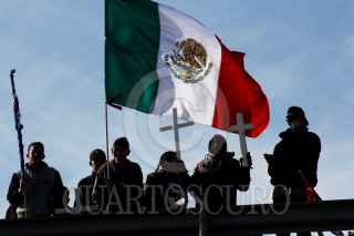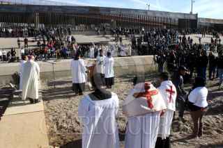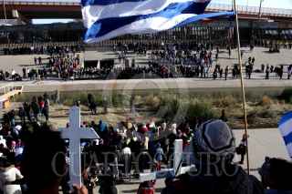 CIUDAD JUÁREZ, CHIHUAHUA, 02NOVIEMBRE2019.- Se llevo acabo una misa binacional por los migrantes difuntos y recordando a las 22 víctimas del tiroteo de Walmart, este evento fue en el rió bravo al costado del Puente Negro, por los festejos del Día de Muertos. Tan acto fue encabezado por los obispos de Juárez, El Paso y Las Cruces,elementos de la Patrulla Fronteriza y de la Policía Federal vigilaban para asegurar que la misa se llevara cabo sin problemas. FOTO: NACHO RUÍZ /CUARTOSCURO.COM