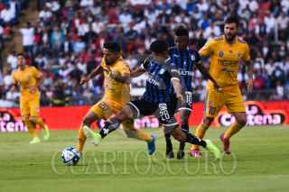 QUERÉTARO, QUERÉTARO, 02NOVIEMBRE2019.- Los Gallos Blancos del Querétaro, en partido correspondiente a la jornada 17 de la Liga MX, se enfrentan en el Estadio Corregidora a los Tigres de la U.A.N.L. Al minuto 33 del segundo tiempo el partido se mantiene en cero a cero. FOTO: PEDRO ANZA /CUARTOSCURO.COM