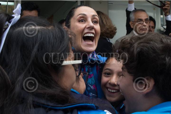 CIUDAD DE MÉXICO, 04NOVIEMBRE2019.- Claudia Sheinbaum, Jefa de Gobierno, encabezó la jornada de "Lunes por la Educación", en donde la mandataria leyó junto con un grupo de alumnos el cuento de "El enmascarado de lata" de Vivian Mansour, esto en la secundaria pública no. 51 "Profesor Carlos Benítez Delorme", ahí también recorrió las obras de reconstrucción que se están realizando en el plantel. FOTO: MOISÉS PABLO /CUARTOSCURO.COM