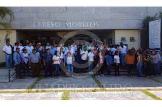 XOCHITEPEC, MORELOS, 04NOVIEMBRE2019.-Plantón de trabajadores administrativos del Centro de Readaptación Social de Atlacholoaya. Los trabajadores exigen mejores condiciones laborales y de seguridad. La semana pasada en este penal se registró un motín de internos que dejo seis presos asesinados. FOTO: ESPECIAL/CUARTOSCURO.COM