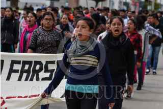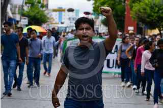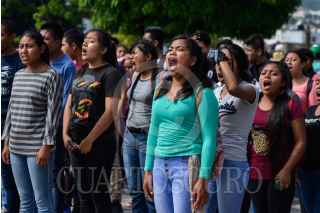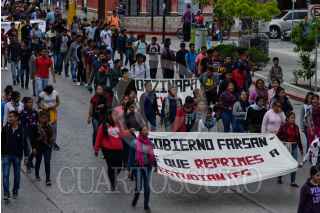 TUXTLA, CHIAPAS, 04NOVIEMBRE2019.- Estudiantes de la Escuela Normal Rural Mactumactzá, marcharon esta mañana por las calles principales de la capital del estado apoyados por compañeros de otras normales rurales como la Escuela Normal Rural Isidro Brugos de Ayotzinapa y otros estados, para exigirle al gobierno que pare la represión hacia los compañeros y se llegue a soluciones reales para acabar con la violencia y seguir estudiando, lo cual es su objetivo junto con la defensa de todas las Escuelas Normales en el país. FOTO: ISABEL MATEOS /CUARTOSCURO.COM