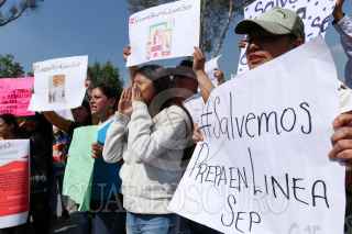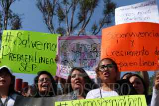 CIUDAD DE MÉXICO, 05NOVIEMBRE2019.- Inconformes se manifiestan a las afueras de la Cámara de Diputados por el anuncio de recortes al programa de Prepa en Línea de la SEP. FOTO: GALO CAÑAS /CUARTOSCURO.COM