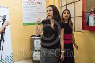 CIUDAD DE MÉXICO, 05NOVIEMBRE2019.- Dunia Ludlow y Andrée Lilian Guigue, en la presentación del programa piloto de recolección de grasas domésticas Esto se realizó en el Mercado 2 de Abril, que se encuentra en el barrio Santa María de la Redonda en la Colonia Guerrero. FOTO: VICTORIA VALTIERRA /CUARTOSCURO.COM