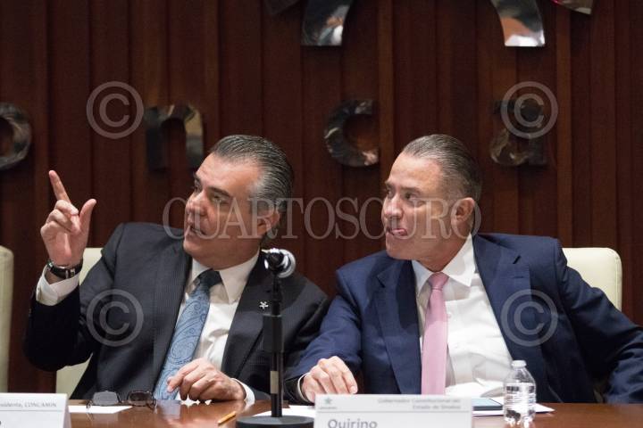 CIUDAD DE MÉXICO, 05NOVIEMBRE2019.- El gobernador de Sinaloa, Quirino Ordaz Coppel, acudió como invitado especial a una reunión de la Concamín, esta mañana. Empresarios y miembros de esta cámara respaldaron al mandatario en los problemas de inseguridad en ese Estado. Francisco Cervantes Díaz, dirigente de la Concamín, lo acompañó en este encuentro. FOTO: VICTORIA VALTIERRA /CUARTOSCURO.COM