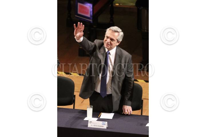 CIUDAD DE MÉXICO, 05NOVIEMBRE.- Alberto Fernández, presidente electo de Argentina, durante la conferencia magistral "Desafíos para America Latina", esto en el Anfiteatro Simón Bolivar del Antiguo Colegio de San Ildefonso. FOTO: ROGELIO MORALES /CUARTOSCURO.COM