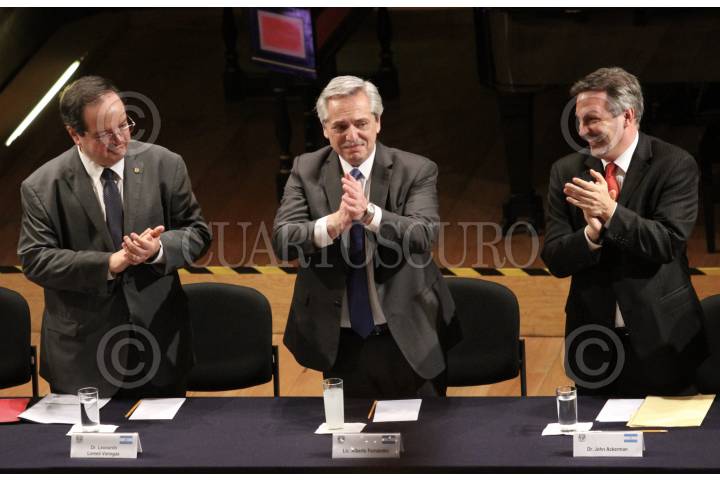 CIUDAD DE MÉXICO, 05NOVIEMBRE.- Alberto Fernández, presidente electo de Argentina, durante la conferencia magistral "Desafíos para America Latina", esto en el Anfiteatro Simón Bolivar del Antiguo Colegio de San Ildefonso. FOTO: ROGELIO MORALES /CUARTOSCURO.COM