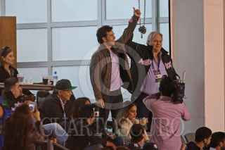 ZAPOPAN, JALISCO, 05NOVIEMBRE2019.- Esta noche el Piloto Mexicano de Formula 1, Sergio Pérez, acompañado del empresario Carlos Bremer acudieron a presenciar las eliminatorias del Torneo Premier 12 de la WBSC donde se disputan dos boletos para los Juegos Olímpicos de Tokio 2020, se enfrentan las Selecciones de México frente a la Selección de Holanda, en juego que se lleva a cabo en el Estadio de Béisbol de los Charros de Jalisco. FOTO: FERNANDO CARRANZA GARCIA / CUARTOSCURO.COM