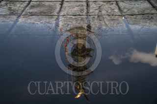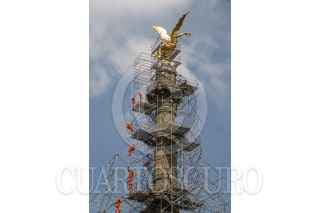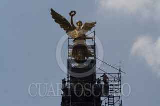 CIUDAD DE MÉXICO, 06NOVIEMBRE2019.- Continua el mantenimiento y restauración del Ángel de la independencia a cargo de decenas de especialistas y colaboradores. FOTO: ANDREA MURCIA /CUARTOSCURO.COM
