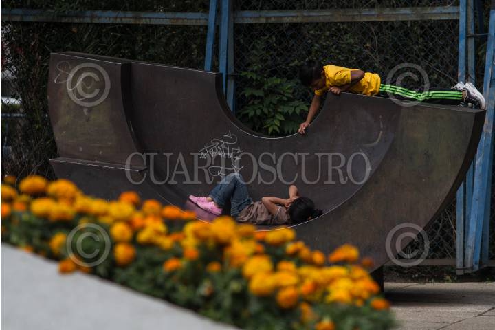 CIUDAD DE MÉXICO, 06NOVIEMBRE2019.- Continua la exposIción al aire libre Mexicraneos así como el desfile de alebrijes. Capitalinos y turistas no pierden la oportunidad para tomarse una fotografía con alguna de las intervenciones de los artistas mexicanos o colarse en las bancas entre las catrinas y catrines. En la imagen un trabajador camina con flores cempasúchil para restaurar jardineras. FOTO: ANDREA MURCIA /CUARTOSCURO.COM
