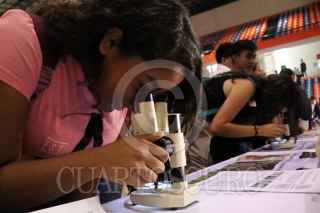 CUERNAVACA, MORELOS, 06NOVIEMBRE2019.- Una estudiante universitaria observa una larva de mosco con un microscopio durante la Jornada Nacional de Salud que se lleva a cabo en el auditorio de la máxima casa de estudios del estado. FOTO: MARGARITO PÉREZ RETANA /CUARTOSCURO.COM