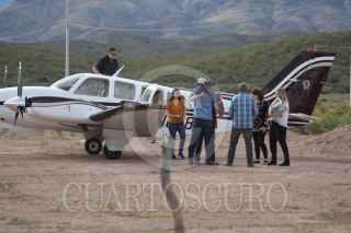 BAVISPE, SONORA, 06NOVIEMBRE2019.- Integrantes de la familia LeBarón comenzaron a llegar al rancho La Morita para el sepelio de las nueve personas que fueron asesinadas en una caravana durante un trayecto hacia Chihuahua, 6 de las victimas eran menores de edad, se tiene previsto que mañana realicen los funerales correspondientes. Continúa una intensa vigilancia por parte de la Guardia Nacional, quienes vigilan la pista en donde están llegando las avionetas con los familiares y las entradas a la finca. FOTO: NACHO RUIZ /CUARTOSCURO.COM