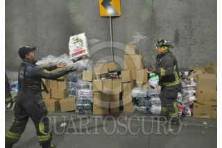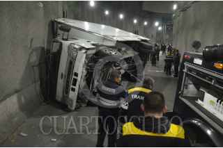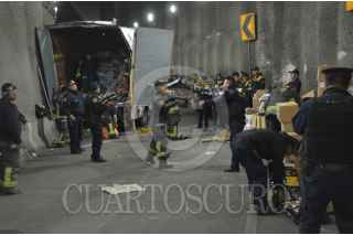 CIUDAD DE MÉXICO, 06NOVIEMBRE2019.- Una camioneta que transportaba abarrotes se volcó mientras circulaba en el puente deprimido de Circuito Interior y el eje 8 sur. De acuerdo a los reportes de las autoridades, el conductor de la unidad de carga circulaba a alta velocidad y perdió el control al tomar la curva, dicho chofer resultó con golpes menores. FOTO: ARMANDO MONROY /CUARTOSCURO.COM