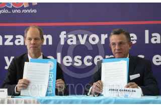 CIUDAD DE MÉXICO, 07NOVIEMBRE.- Christian Skoog, representante de Unicef en México y Jorge Garralda, fundador y director de Jugutón, encabezaron la firma de la alianza en te Unicef y la iniciativa Juguetón en las instalaciones de TV Azteca Ajusco. FOTO: ROGELIO MORALES /CUARTOSCURO.COM