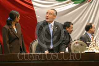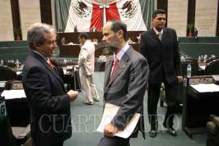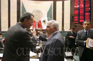MEXICO, D.F. 06OCTUBRE2005.- Emilio Chuayffet, coordinador de fracción parlamentaria del PRI en la cámara de diputados conversa con un diputado en San Lázaro. FOTO: Nelly Salas/CUARTOSCURO.COM