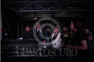 CIUDAD DE MÉXICO, 07NOVIEMBRE2019.- El secretario de cultura Alfonzo Suárez Del Real, habla por el micrófono buscando tranquilizar a la impaciente muchedumbre que comienza a salvar tras el retraso de la "Ópera Monumental Moctectuhzoma" debido a problemas técnicos con el sonido en el Zócalo. FOTO: PEDRO ANZA /CUARTOSCURO.COM