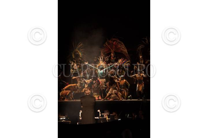 CIUDAD DE MÉXICO, 07NOVIEMBRE2019.- La ópera "Monumental Moctectuhzoma" se presentó en la plancha del Zócalo Capitalino. La presentación contó con la presencia del secretario de cultura Alfonzo Suárez Del Real. FOTO: PEDRO ANZA /CUARTOSCURO.COM