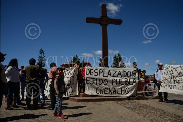 SAN CRISTOBAL DE LAS CASAS, CHIAPAS, 08NOVIEMBRE2019.- Pobladores del Ejido Puebla en el municipio de Chenalhó, marcharon desde el campamento donde viven hasta la Plaza de La Paz ubicada en la cabecera municipal. La comunidad fue desplazada de sus hogares por la violencia ejercida por grupos paramilitares en sus regiones de origen, el gobierno de acuerdo a testimonios de los pobladores, ha incumplido en los acuerdos para resolver la problemática y ellos continuan sin la posibilidad de regresar a sus casas, sin comida, sin trabajo, y en varios de los casos sin escuelas para los niños. FOTO: ISABEL MATEOS /CUARTOSCURO.COM