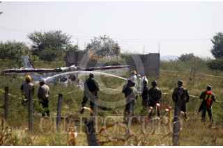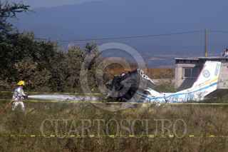 TEMIXCO, MORELOS, 08NOVIEMBRE2019.- Una avioneta Cessna, matrícula XB-JVN, de la escuela de aviación “Vitar Aeronáutica” se estrelló en un predio de la colonia Aeropuerto. La aeronave realizaba un vuelo local tripulada por Mario René (piloto e instructor perteneciente a la Dirección de Aeronáutica Civil) y su alumno Ítalo, los cuales murieron en el impacto. Autoridades del aeropuerto “Mariano Matamoros” prestaron el primer auxilio, mientras que elementos de la policía de Morelos, Guardia Nacional y personal de la Fiscalía del Estado llegaron para resguardar la zona. Será la Dirección de Investigación de Accidentes de Aviación la responsable de dar seguimiento para determinar las causas probables del siniestro. FOTO: MARGARITO PÉREZ RETANA /CUARTOSCURO.COM