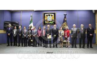 CIUDAD DE MÉXICO, 08NOVIEMBRE.- Francisco Xavier Soberón, Presidente de la junta de Gobierno de la UNAM y miembros de esta misma, dieron a conocer que Enrique Luis Graue Wiechers, permanecerá cuatro años más como rector de la Univesidad Autónoma de México. FOTO: ROGELIO MORALES /CUARTOSCURO.COM