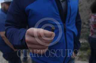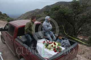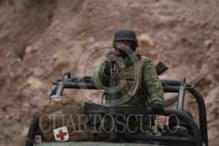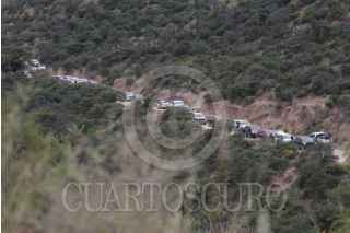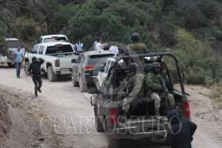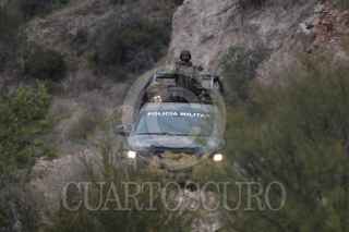 BAVISPE, SONORA, 08NOVIEMBRE2019.- La comunidad de LeBarón traslado los restos de Rhonita Miller quien murió con sus gemelos y otro de sus hijos durante un ataque armado en una brecha, en el ataque también murieron otros dos mujeres y otros cuatro menores, hoy muy temprano salieron en caravana del rancho La Mora para llevar sus restos al municipio de Galeana, ubicado en el estado de Chihuahua, en su traslado pararon por el lugar donde perecieron calcinados, el traslado estuvo vigilado por elementos de la Policía Militar, quienes portaban artillería pesada. FOTO: NACHO RUIZ /CUARTOSCURO.COM