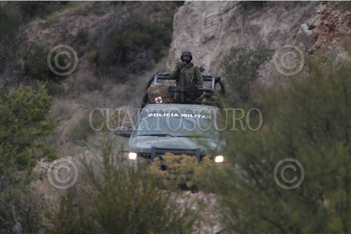 BAVISPE, SONORA, 08NOVIEMBRE2019.- La comunidad de LeBarón traslado los restos de Rhonita Miller quien murió con sus gemelos y otro de sus hijos durante un ataque armado en una brecha, en el ataque también murieron otros dos mujeres y otros cuatro menores, hoy muy temprano salieron en caravana del rancho La Mora para llevar sus restos al municipio de Galeana, ubicado en el estado de Chihuahua, en su traslado pararon por el lugar donde perecieron calcinados, el traslado estuvo vigilado por elementos de la Policía Militar, quienes portaban artillería pesada. FOTO: NACHO RUIZ /CUARTOSCURO.COM