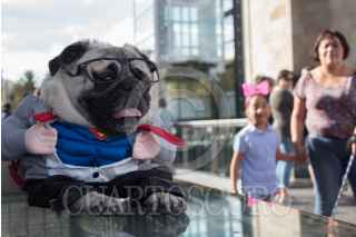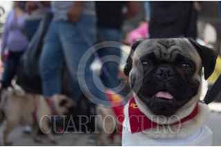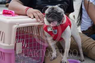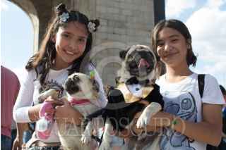 CIUDAD DE MÉXICO, 09NOVIEMBRE2019.- Cientos de personas con sus perros de raza pug, acudieron al Monumento a la Revolución con motivo de la “Quinta reunión masiva de pugs” organizada Club Chatitos MX. Durante la reunión realizaron concursos de disfraces. FOTO: MAGDALENA MONTIEL /CUARTOSCURO.COM