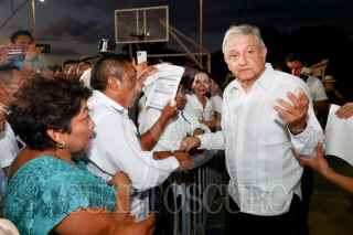 FELIPE CARRILLO PUERTO, QUINTANA ROO, 09NOVIEMBRE2019.- Andrés Manuel López Obrador, presidente de México, planteó cancelar el Tren Maya en caso de que haya oposición de los pobladores en una consulta, pues no quiere que haya una lluvia de amparos como con el Aeropuerto en Santa Lucía, ésto en el marco de una gira en el sureste del país. FOTO: ELIZABETH RUIZ /CUARTOSCURO.COM