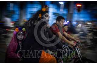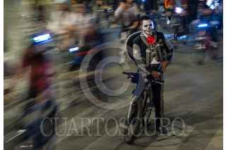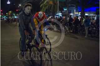 CIUDAD DE MÉXICO, 09NOVIEMBRE2019.- Como parte de las actividades por el Día de Muertos, se realizo el paseo nocturno por las principales Avenidas de la Ciudad, cientos de personas de todas edades se dieron cita para andar en bicicleta, patines, entro otros, disfrazados de catrinas, catrines, personajes de ciencia ficción, hasta de peliculas de terror o políticos. FOTO: ANDREA MURCIA /CUARTOSCURO.COM