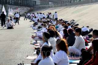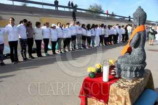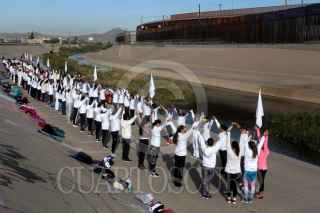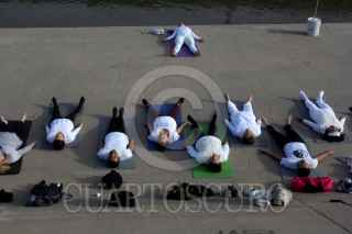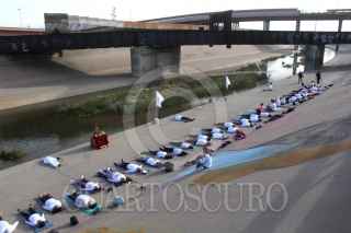 CIUDAD JUÁREZ, CHIHUAHUA, 10NOVIEMBRE2019.- El maestro yogui y fundador de YSYoga System, Mauricio Rivera, destacó durante la sesión a las orillas del Río Bravo, cuyo objetivo es promover una cultura de paz entre las ciudades hermanas de Juárez-El Paso. FOTO: NACHO RUIZ /CUARTOSCURO.COM