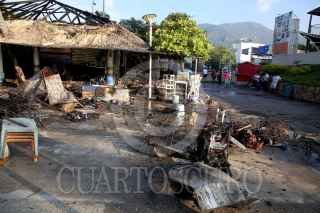ACAPULCO, GUERRERO, 11NOVIEMBRE2019.- Veinte locales de accesorios de playa se encendieron durante la madrugada de este lunes en la playa Papagayo de Acapulco, los dueños de los locales declararon ignorar las causas y tampoco las autoridades han les dicho las causas del incendio. FOTO: CARLOS ALBERTO CARBAJAL /CUARTOSCURO.COM