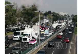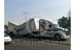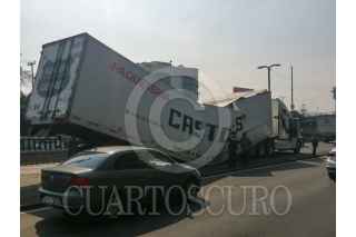 CIUDAD DE MÉXICO, 11NOVIEMBRE2019.- La caja de un tráiler de la compañia Castores se partió en dos por el exceso de carga, los hechos ocurrieron en el Viaducto Tlalpan, a la altura de la colonia Acoxpa, este percance género gran carga vehicular. FOTO: ARMANDO MONROY /CUARTOSCURO.COM