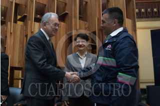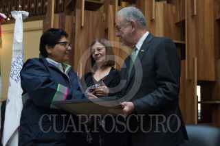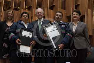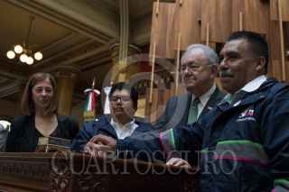 CIUDAD DE MÉXICO, 12NOVIEMBRE2019.- Javier Jiménez Espriú, secretario de Comunicaciones y Transportes, encabezó al celebración del Día del Cartero y Empleado Postal, en el Palacio Postal, en donde se reconoció por 30 y 35 años trabajando en el Servicio PosTal Mexicano a Celia Ramírez y Primitivo García Parra, respectivamente. Lo acompañaron Salma Jalife, subsecretaria de Comunicaciones y Desarrollo Tecnológico de la Secretaría de Comunicaciones y Transportes (SCT), y María Emilia Alejandra Janetti Díaz, directora del Servicio Postal Mexicano. FOTO: MOISÉS PABLO /CUARTOSCURO.COM